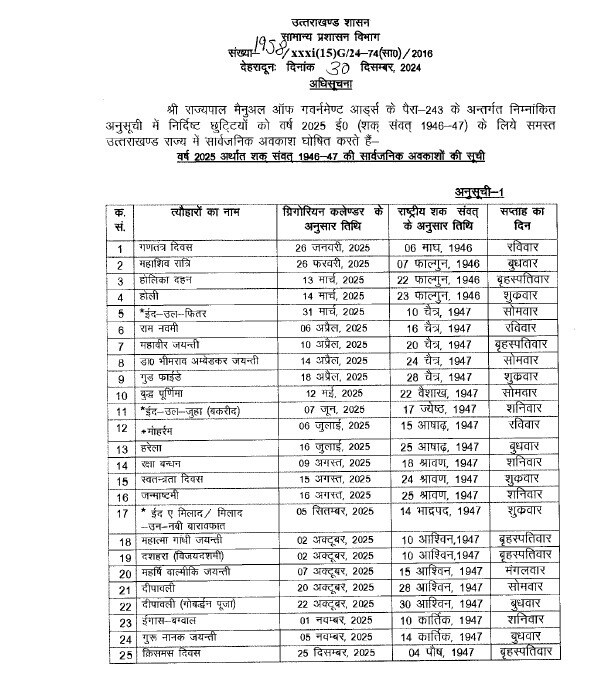 उत्तराखंड शासन की ओर से साल के शुरुआत में जारी अवकाश कैलेंडर के मुताबिक, अगस्त 2025 में तीन बड़ी सार्वजनिक छुट्टियां होंगी. खास बात यह है कि ये छुट्टियां त्योहार और ख़ास दिवस पर हैं, जिनका इंतज़ार बच्चों से लेकर बड़ों तक को रहता है. इन दिनों ज्यादातर स्कूल भी बंद (August 2025 school holidays) रहेंगे. यानी बच्चों के लिए डबल बोनस–ना पढ़ाई, ना होमवर्क. हालांकि स्वतंत्रता दिवस पर सभी स्कूलों में कार्यक्रमों का आयोजन होता है, जिसे बच्चे खूब एंजॉय करते हैं.